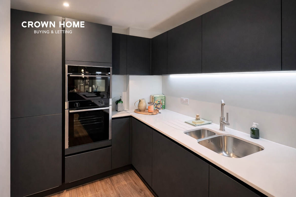 The kitchen is a standout feature, equipped with Symphony cabinets. Top-of-the-line Neff appliances, including a single or double oven, built-in microwave, 4-ring induction hob, extractor hood, integrated fridge freezer, and dishwasher, ensure a premium cooking experience. A utility cupboard conveniently houses the freestanding washer/dryer.