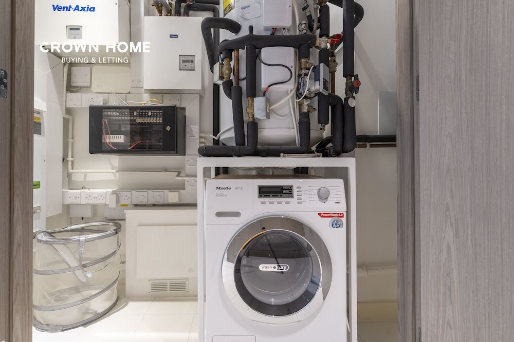 Practicality is seamlessly integrated, with additional storage housed in the hallway utility cupboard, which includes a washer/dryer for everyday convenience.