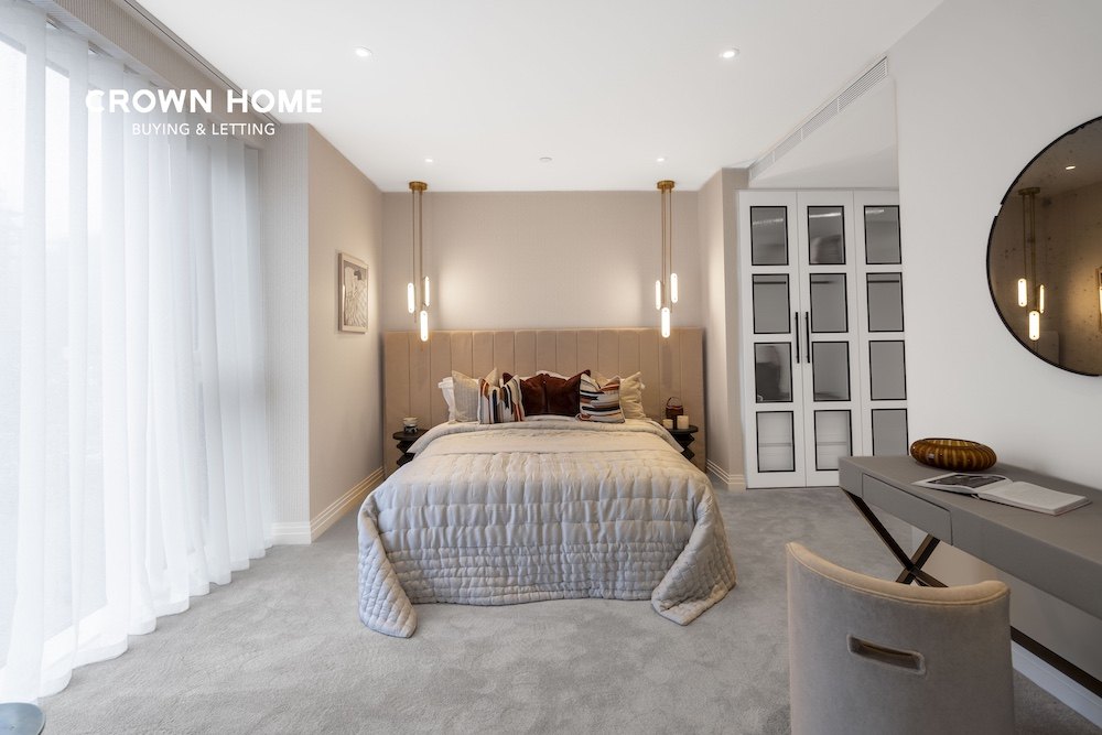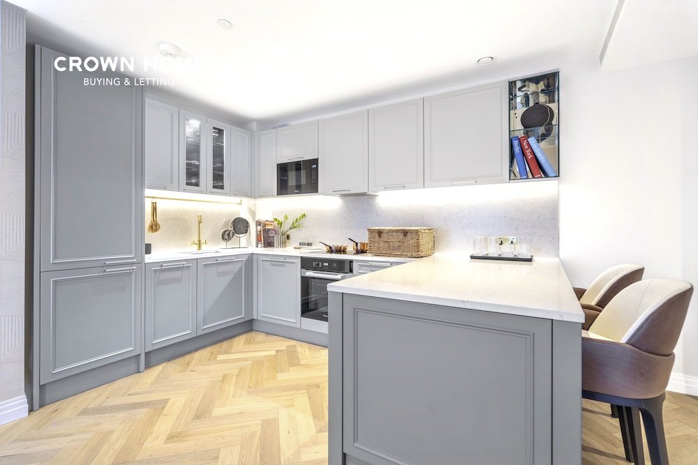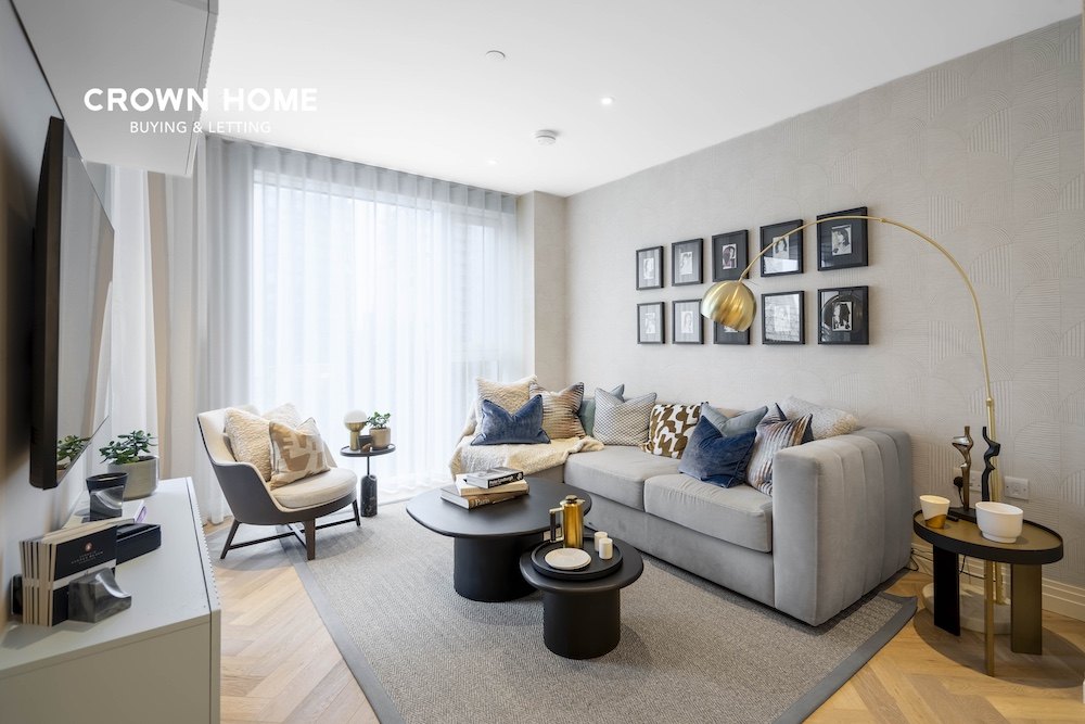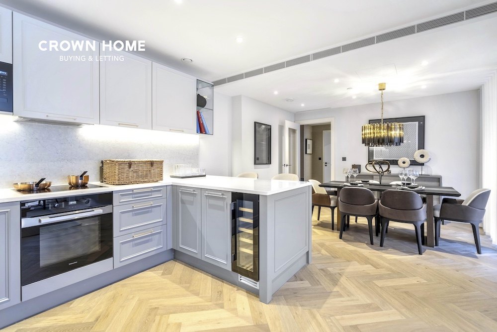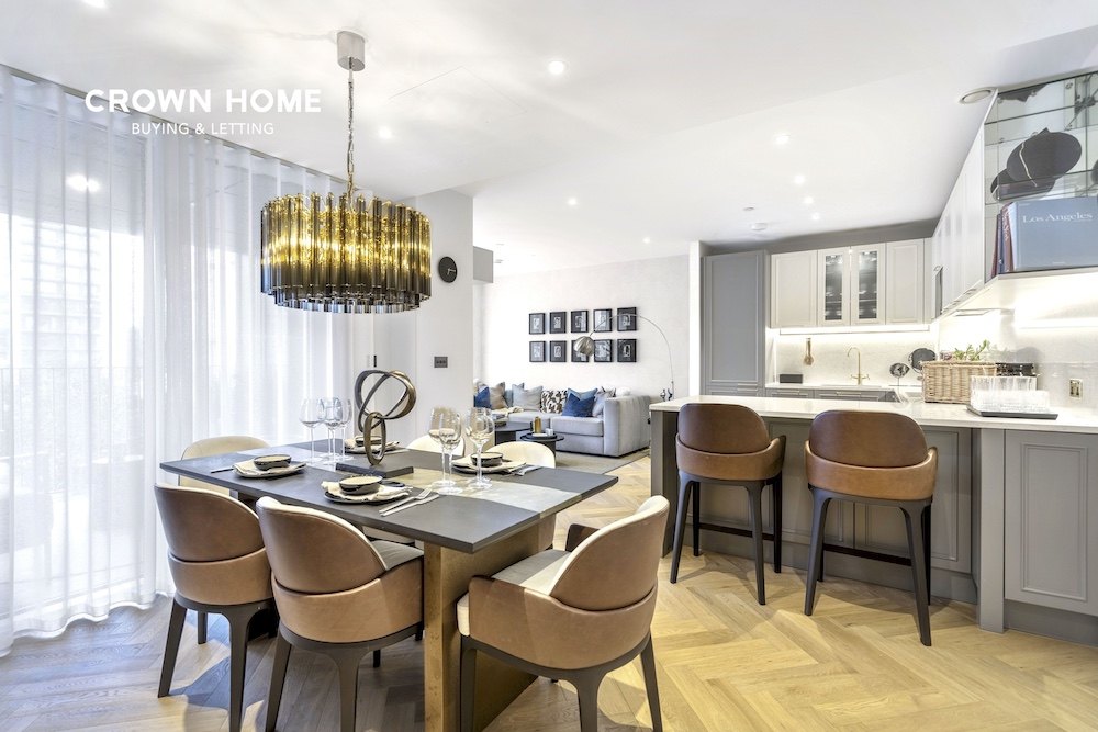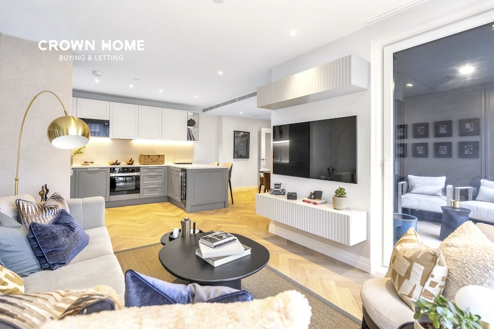 An exceptional former show apartment located within the prestigious Kings Tower of the Chelsea Creek development. This beautifully presented first-floor flat is offered fully furnished to an exceptionally high standard, showcasing high-quality interiors and thoughtful design throughout.