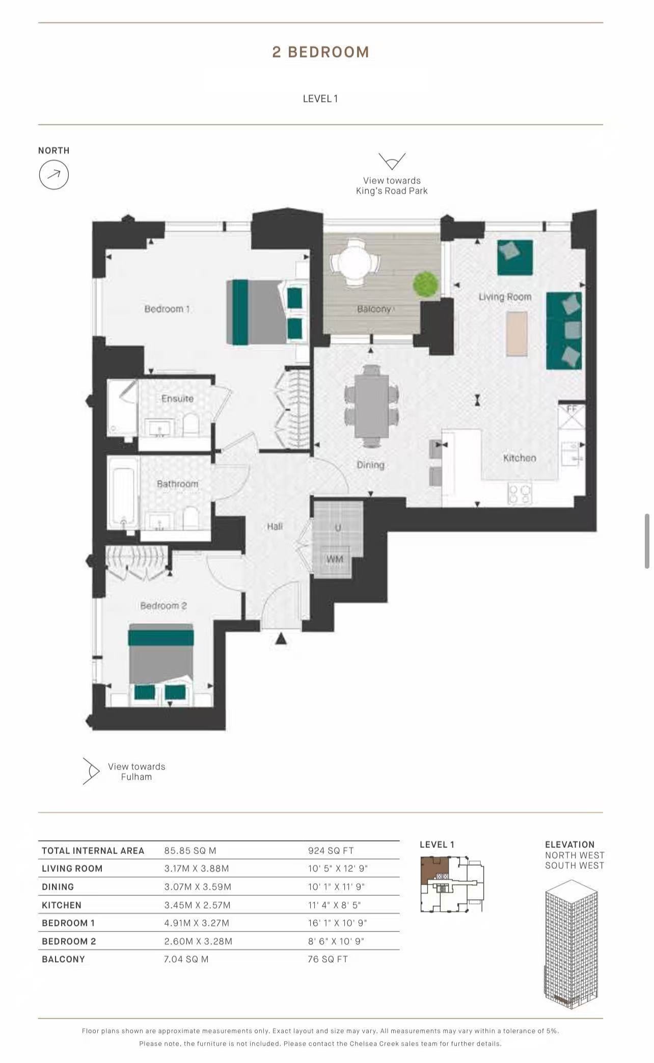 Further benefits include a private balcony with pleasant views towards Kings Road Park, adding valuable outdoor space, and the overall sense of quality expected from a landmark riverside development.
