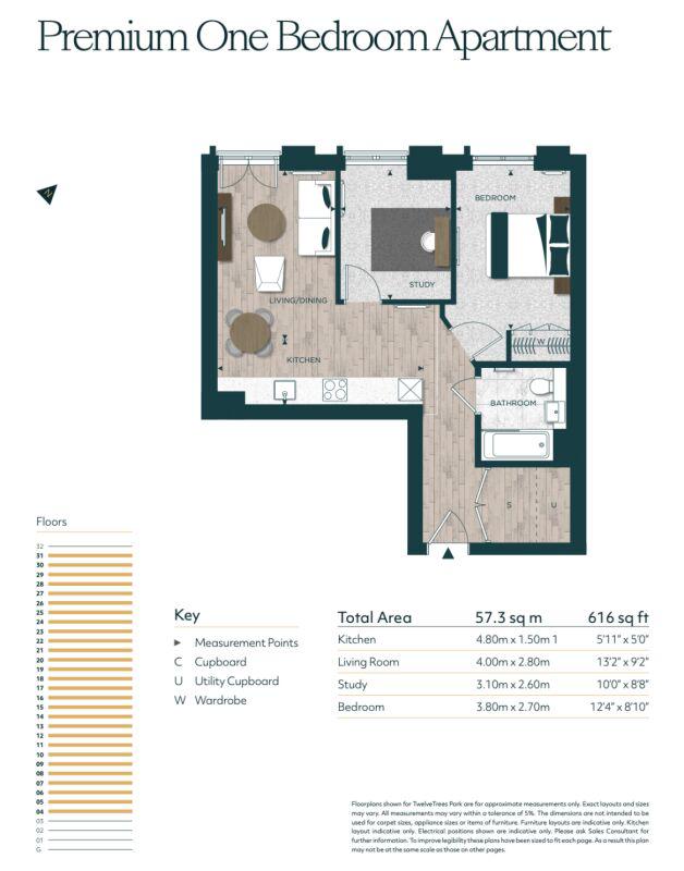 A premium one-bedroom apartment with a study on the 30th floor, just a short walk from West Ham Station.