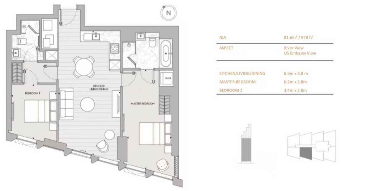 Residents of Thames City have a series of five-star facilities at their disposal, with an emphasis on the excellent quality of life. A pool, gym, sauna, and wellness center ensure getting the absolute most from your experience, which is overseen by a dedicated, 24hr concierge service. A cinema and private dining room are also available, providing a perfect retreat at the end of a busy day.