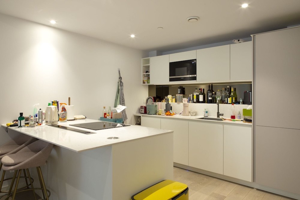 A bright, modern one-bedroom, one-bathroom apartment with a private balcony, just a short walk from the River Thames. Light wooden flooring flows seamlessly throughout, while floor-to-ceiling windows fill the space with natural light, creating a calm and contemporary feel.