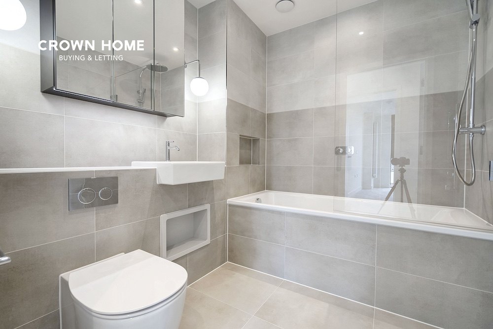 Both bathrooms are finished to a high standard with marble-effect tiling that adds a touch of luxury. One is a sleek ensuite with a walk-in shower, while the other features a generously sized bathtub, ideal for unwinding at the end of the day.