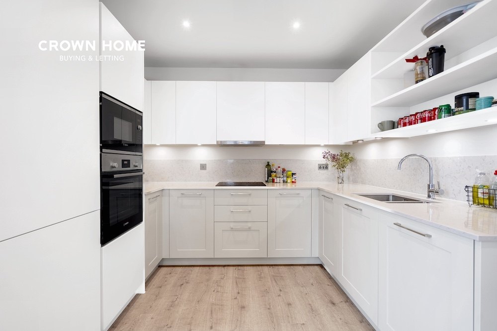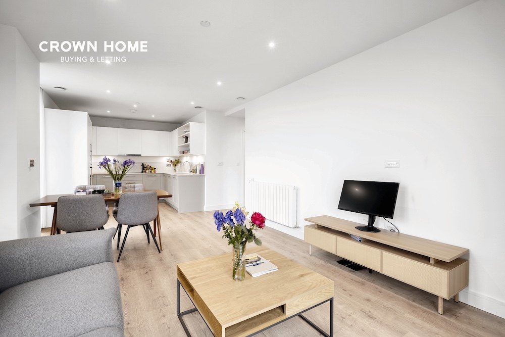 This spacious apartment features elegant wooden flooring throughout the main living areas and expansive floor-to-ceiling windows that flood the space with natural light. From the comfort of your home, enjoy sweeping views of the O2 and Canary Wharf, adding a touch of iconic London to your everyday surroundings. The open-plan layout features a fully integrated kitchen that seamlessly blends into the bright and airy living area, making it perfect for both relaxing and entertaining.