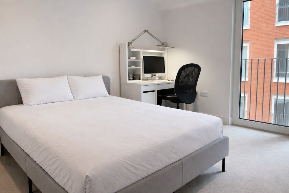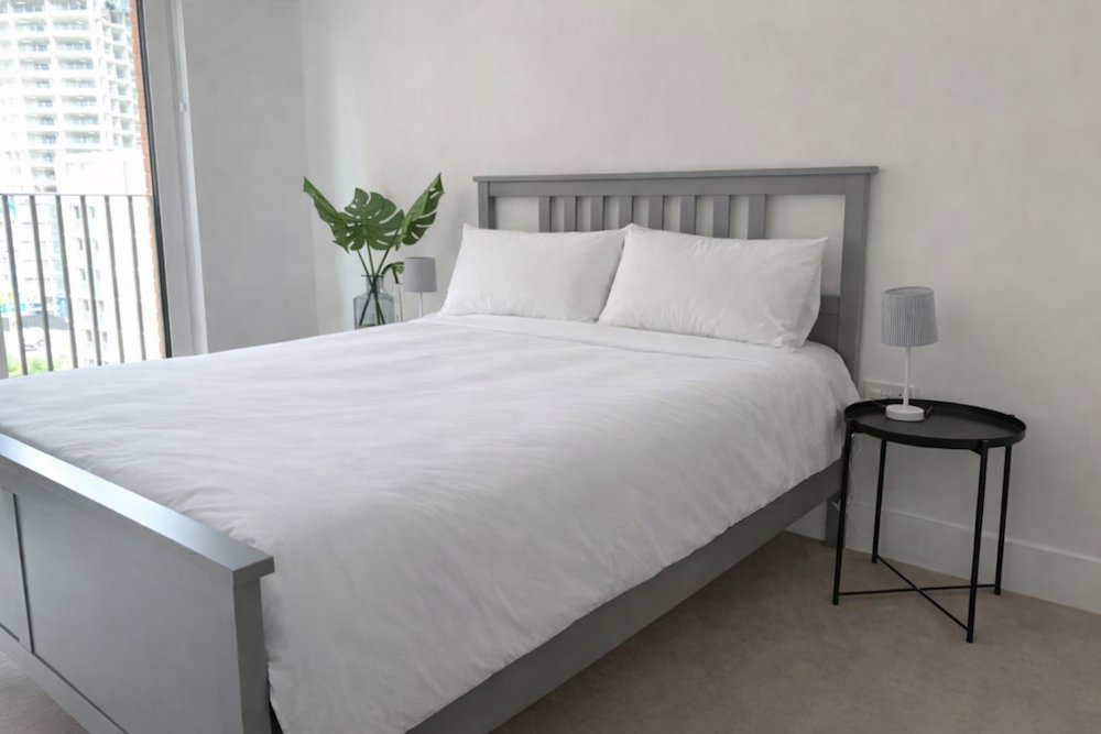 This stylish two-bedroom, two-bathroom apartment is set on the 6th floor and benefits from excellent natural light throughout, enhanced by floor-to-ceiling windows and charming Juliette balconies. The contemporary kitchen is finished to a high specification, complete with Siemens appliances and sleek stone worktops, offering both style and functionality.